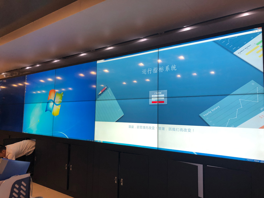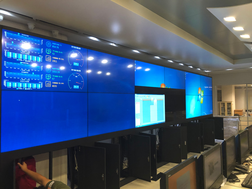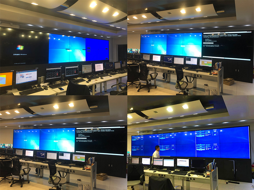 此次,采用的是信弘超窄邊1.8mm拼縫,總計12塊55寸的4K超清顯示液晶拼接屏,安裝方式為機柜安裝。