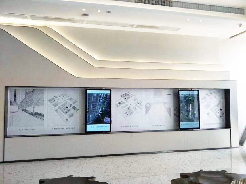 滑軌屏是一款高科技人機互動展示設備,集趣味性、交互性、娛樂性、實用性等多種效果為一體,使訪客的互動體驗效果更加突出,令人驚嘆的靜動態影像交互實現,具有強大的宣傳效果。滑軌屏的特點就是使枯燥的文字在視頻上生動展現,還可以更好的進行詳細講解。滑軌屏自帶精準的控制方式,結合背景墻內容互動,自動移動到對應點位展示其數字內容,可以是圖片、文字、視頻。